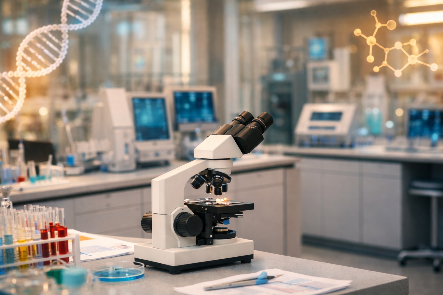 - En Biochimie : La spectrophotométrie et la chromatographie (pour le dosage des hormones ou des médicaments) assurent la fiabilité des bilans fonctionnels (hépatique, rénal, lipidique) et glucidiques, avec des marqueurs clés pour un suivi précis du diabète.